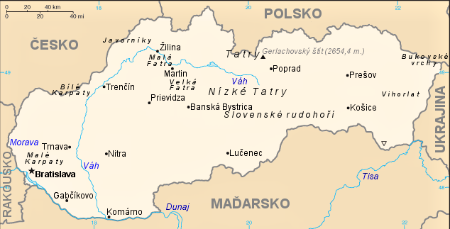 - Slovensko je vnitrozemský stát nacházející se ve střední Evropě. Celkový rozsah jeho území čítá 49 036 km2.Nejvyšším bodem je Gerlachovský štít ve Vysokých Tatrách, dosahující výšky 2 655 m.Jednu z nejvýznamnějších řek protékajících Slovenskem představuje Dunaj.Nejdelším slovenským vodním tokem je Váh.